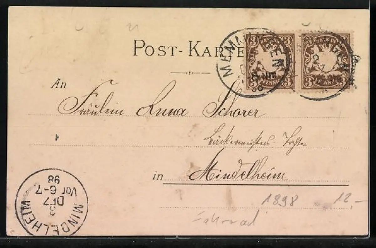alte Ansichtskarte, gelaufen 1898, guter Zustand