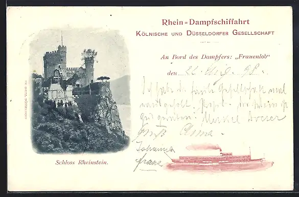 AK Dampfer Frauenlob der Kölnischen und Düsseldorfer Gesellschaft