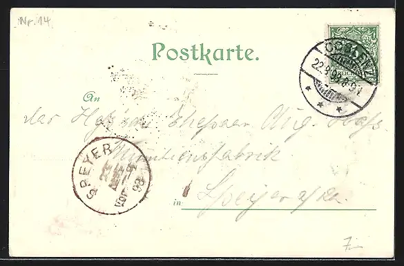 alte Ansichtskarte, gelaufen 1898, guter Zustand