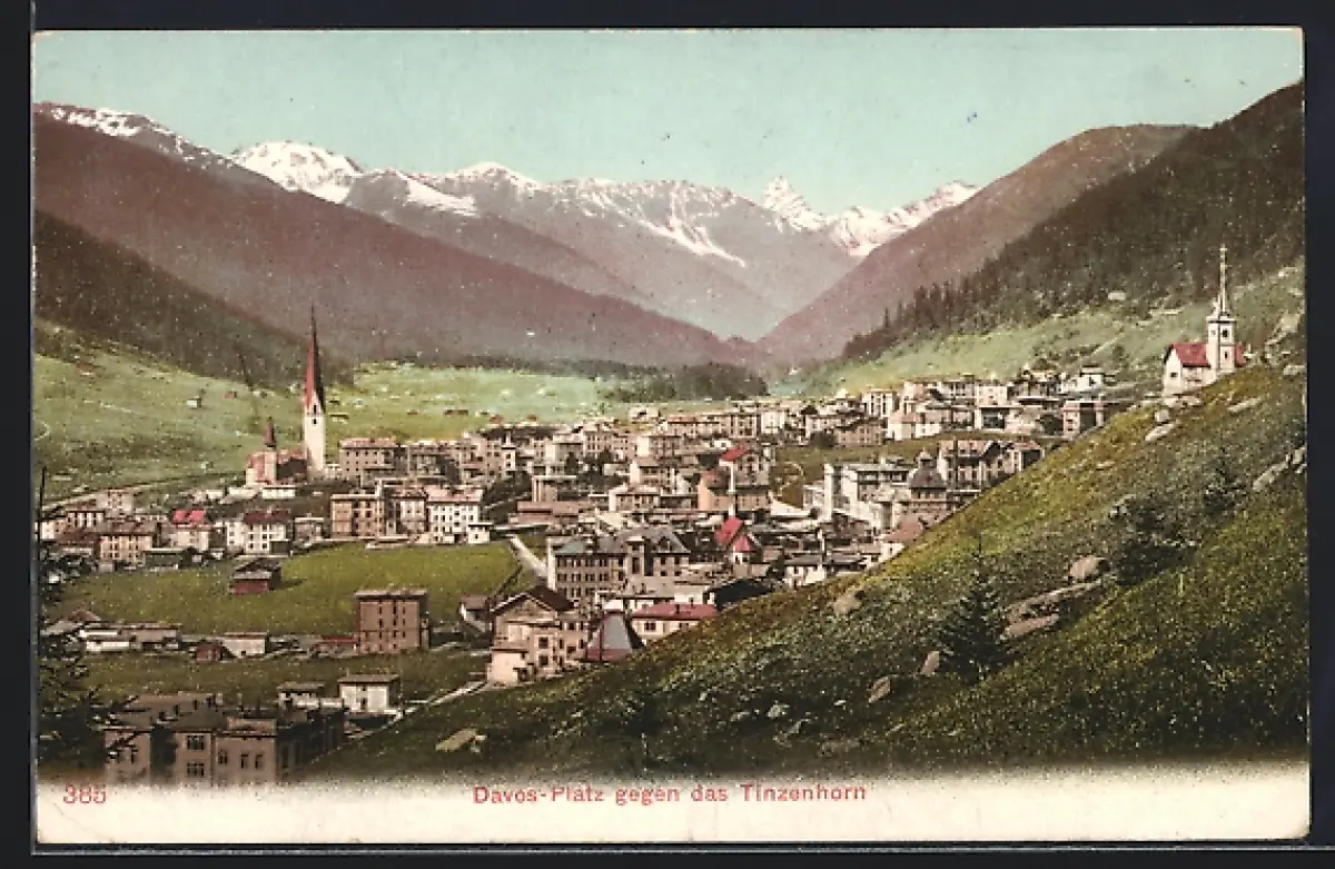 AK Davos-Platz, Ortspanorama mit Tinzenhorn