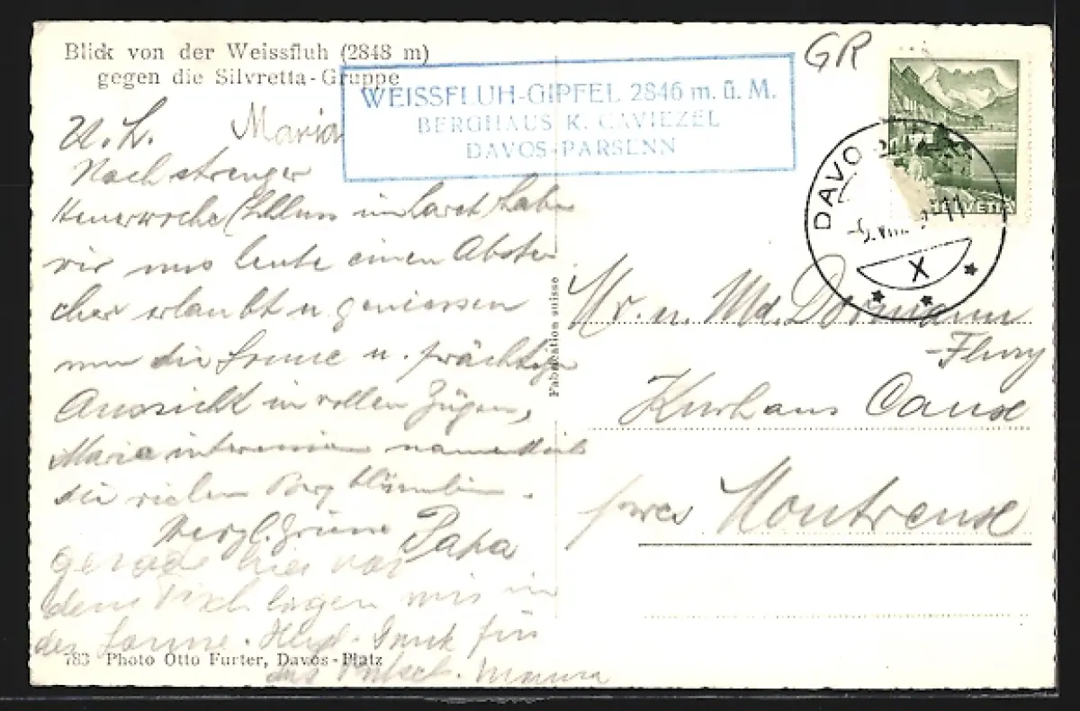 AK Davos, Restaurant Weissfluh und Blick gegen die Silvretta-Gruppe