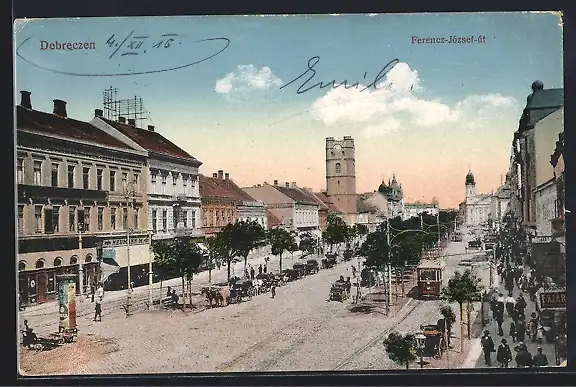 AK Debrecen / Debreczin, Ferencz-József-üt, Strassenbahn