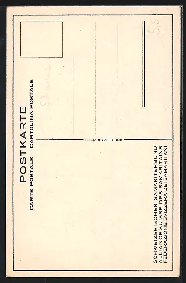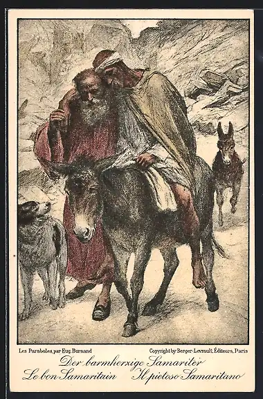 AK Der barmherzige Samariter stützt Kranken auf dem Esel, Schweizerischer Samariterbund, Rotes Kreuz