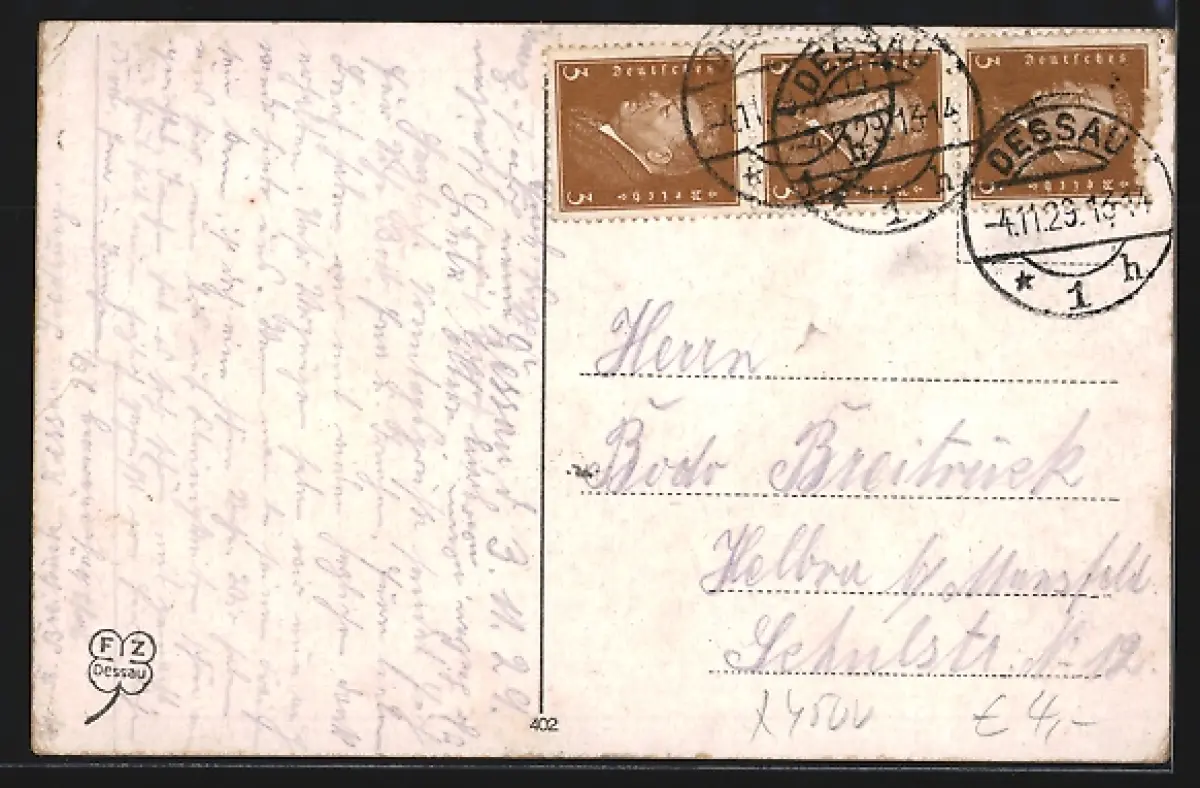 alte Ansichtskarte, gelaufen 1929, Eckknicke rechts, guter Zustand