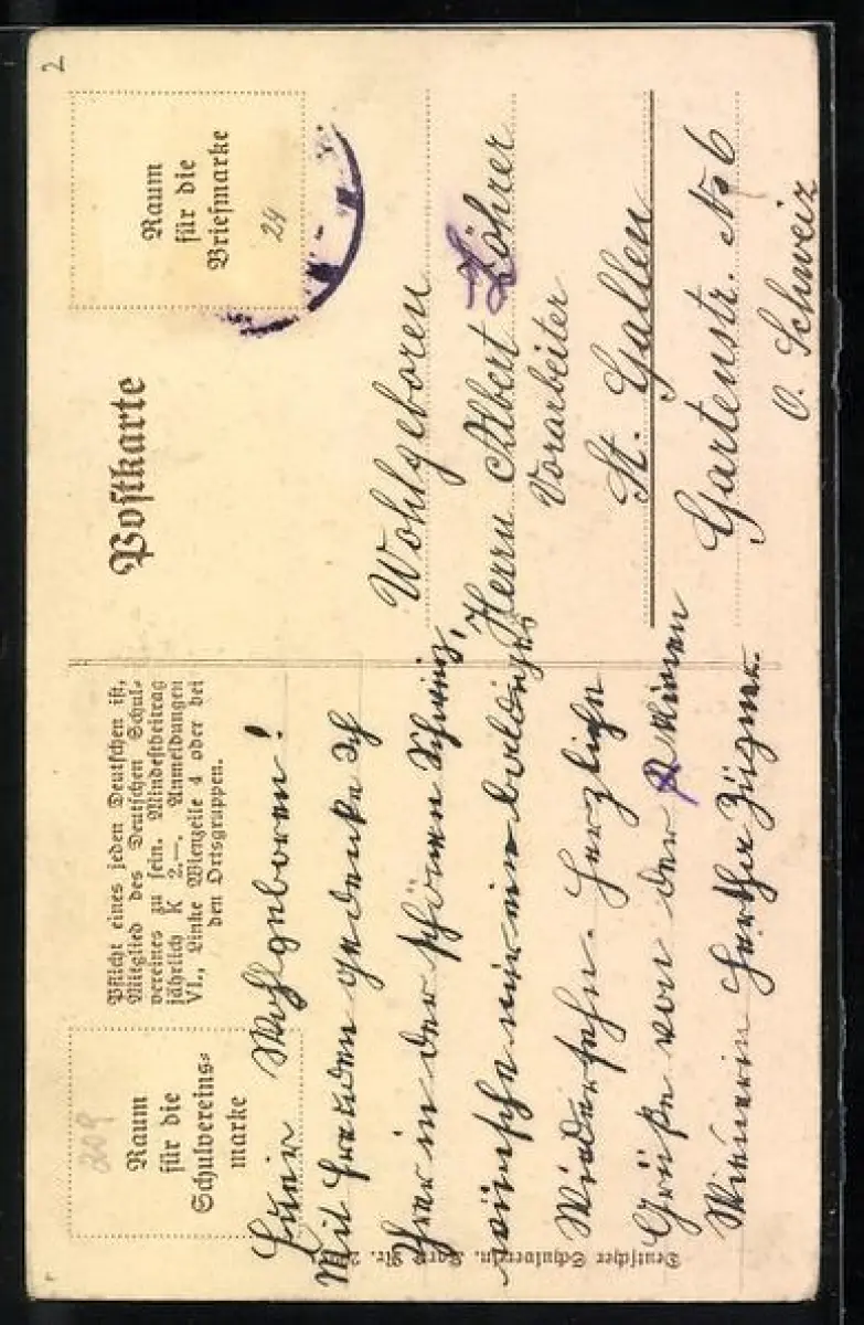 alte Ansichtskarte, gelaufen, Briefmarke entfernt, guter Zustand