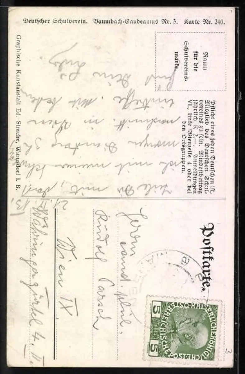 AK Deutscher Schulverein NR 240: Burschenschaftler feiern ihr leichtes Studentenleben