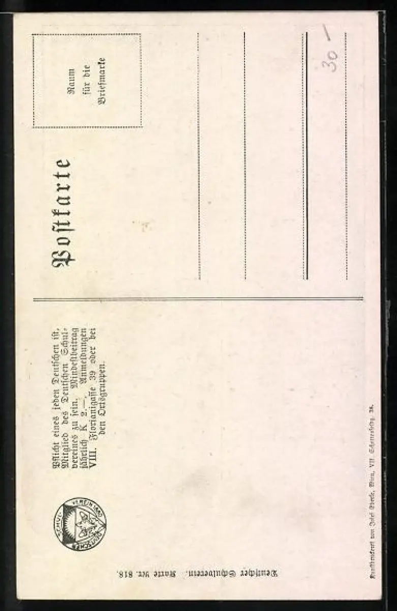 AK Deutscher Schulverein NR: 818, Wien VII, Ferdinand Raimund Denkmal vor dem Deutschen Volkstheater
