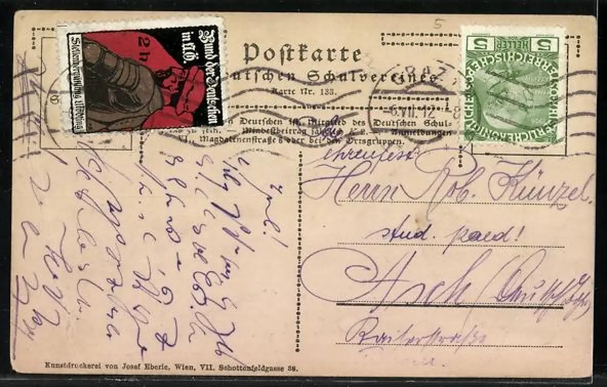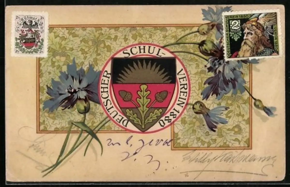 AK Deutscher Schulverein Nr. 133: Kornblumen und Wappen