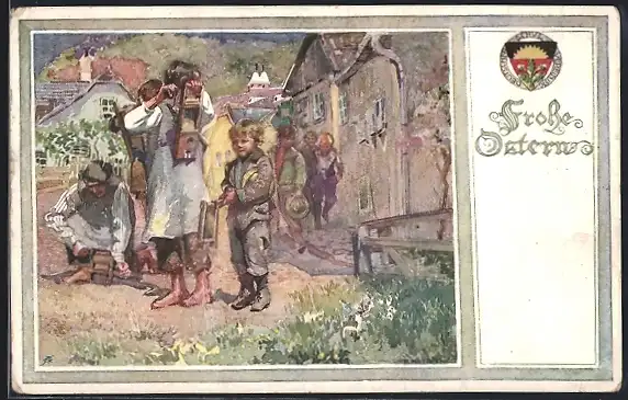 AK Deutscher Schulverein Nr.476: Frohe Ostern, Familie bei der arbeit