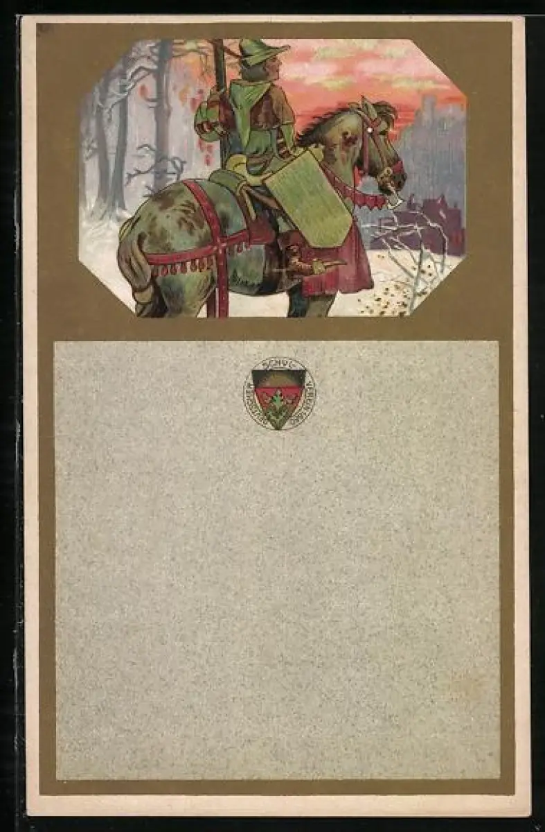 AK Deutscher Schulverein: Ritter zu Pferd in der Abenddämmerung