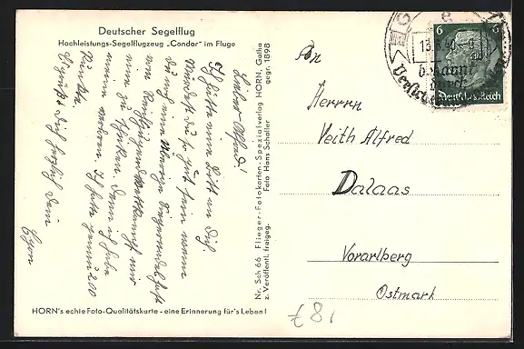 AK Deutscher Segelflug, Hochleistungs-Segelflugzeug Condor im Fluge,