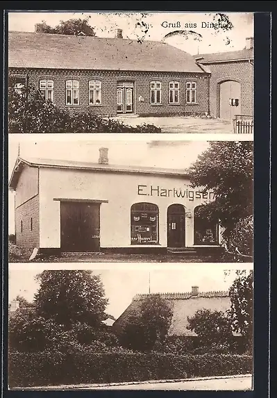 AK Dingholz, Wohnhäuser und Geschäft von E. Hartwigsen