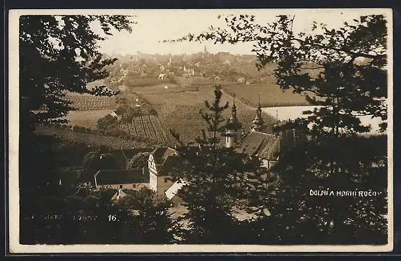AK Dolni a Hdrní Rocoy, Panorama mit Kirche