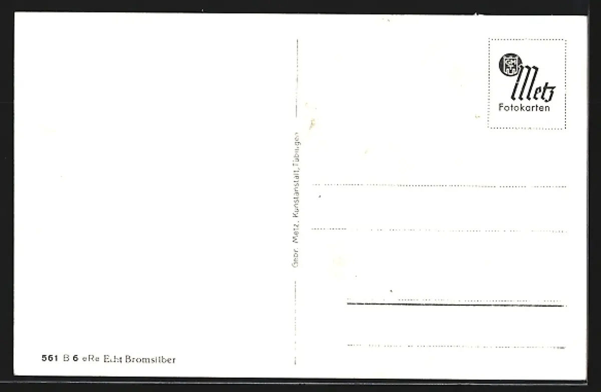 Personenbezogene Daten auf der Rückseite der Karte wurden durch blauen Textmarker unkenntlich gemacht. Die blauen Stellen sind auf die Vorderseite durchgeweicht und wirken sich negativ auf das Postkartenfoto aus