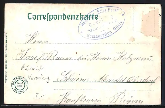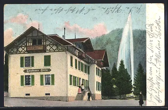 AK Dornbirn, Gasthaus Gütle mit Springbrunnen