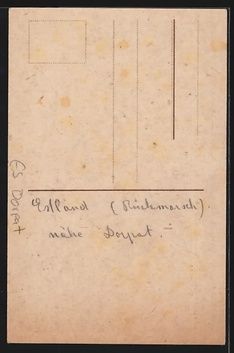 Personenbezogene Daten auf der Rückseite der Karte wurden durch blauen Textmarker unkenntlich gemacht. Die blauen Stellen sind auf die Vorderseite durchgeweicht und wirken sich negativ auf das Postkartenfoto aus