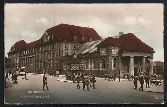 AK Dortmund, Bahnhofspostamt und Strassenbahn