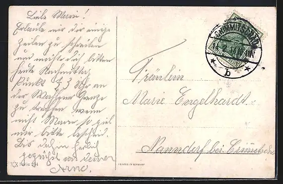 alte Ansichtskarte, gelaufen 1914, Briefmarke entfernt, guter Zustand
