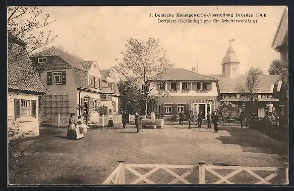 AK Dresden, 3. Deutsche Kunstgewerbe-Ausstellung 1906, Dorfplatz