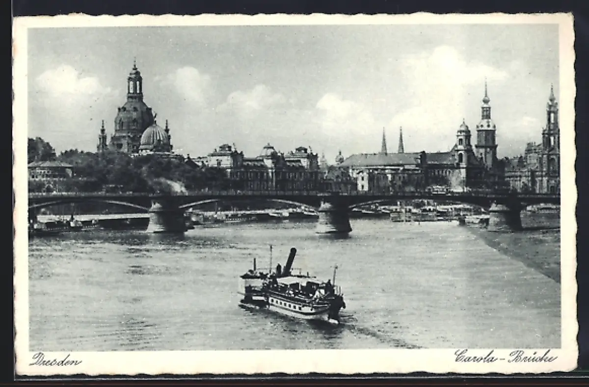 AK Dresden, Dampfer passiert die Carola-Brücke
