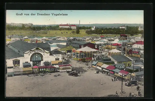 AK Dresden, Dresdener Vogelwiese, Festgelände mit Langs Bierhalle aus der Vogelschau