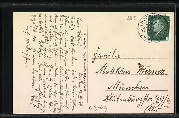 alte Ansichtskarte, gelaufen 1929, guter Zustand