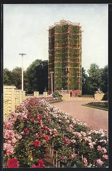 AK Dresden, Jubiläums-Gartenbau-Ausstellung 1926, Blick v. Riesengrossen Rosengarten zum Grüner Dom