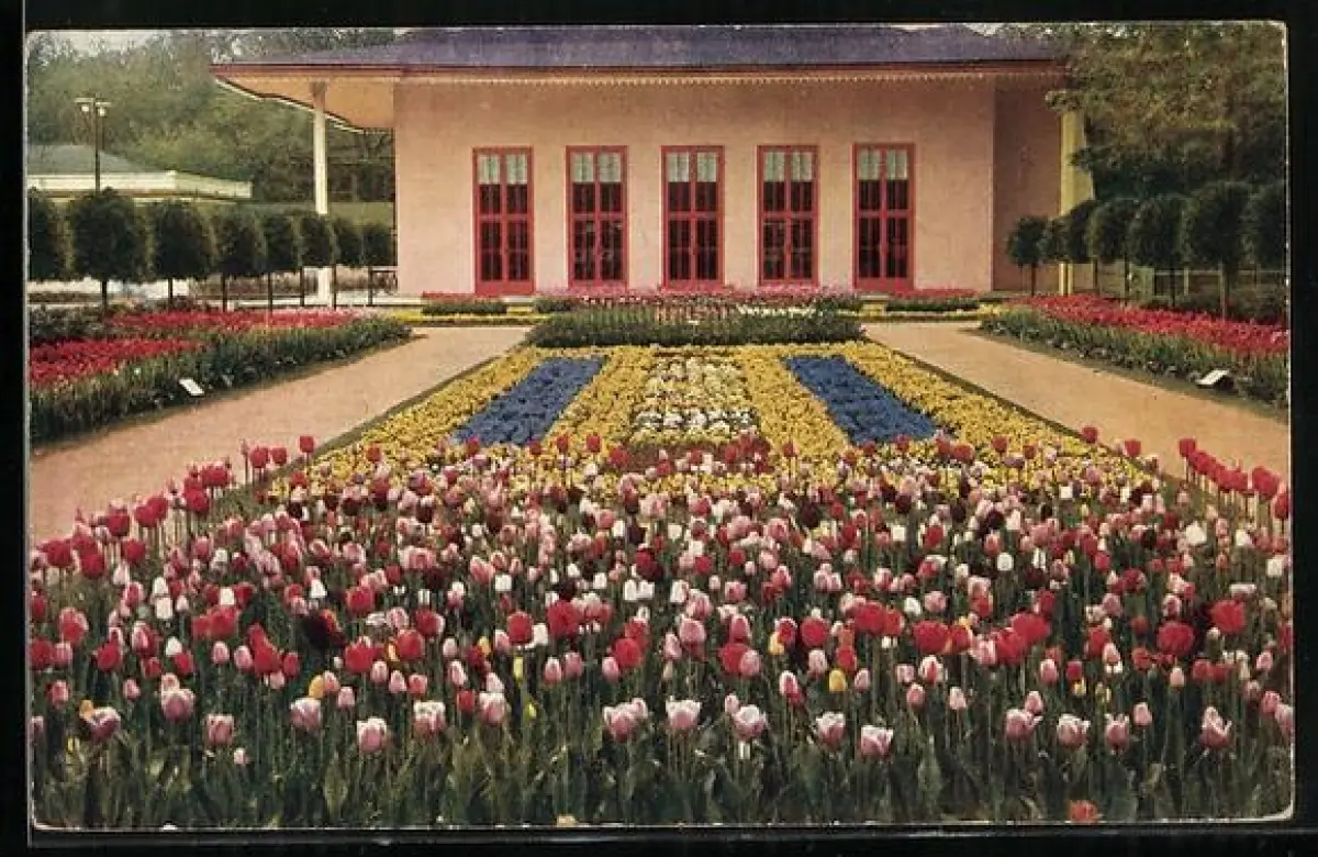 AK Dresden, Jubiläums-Gartenbau-Ausstellung 1926, Schmuckanlage am Haupteingang