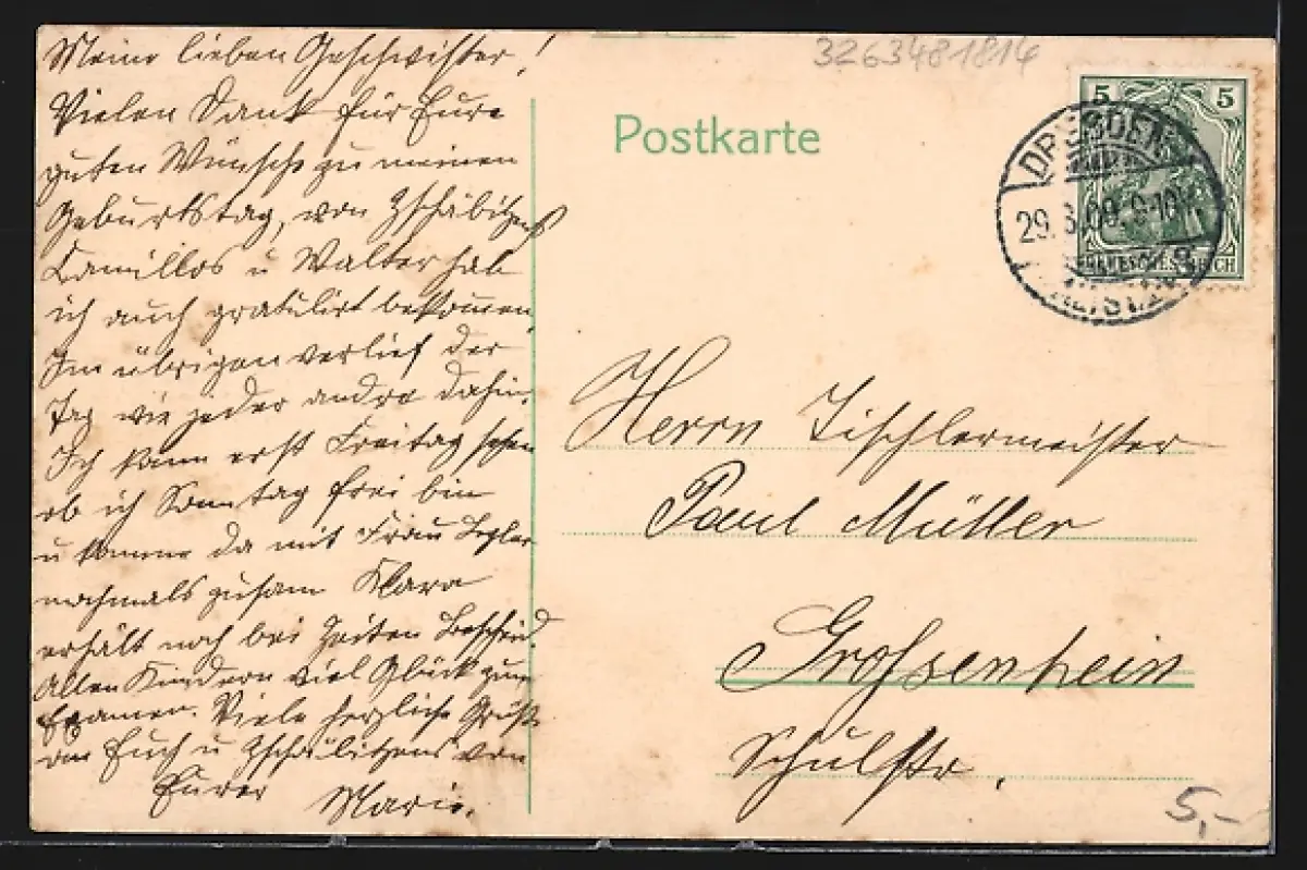 alte Ansichtskarte, gelaufen 1909, guter Zustand
