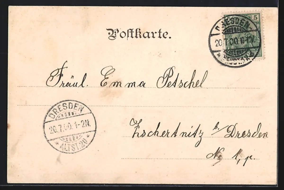 alte Ansichtskarte, gelaufen 1900, guter Zustand
