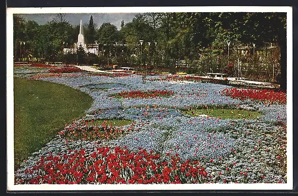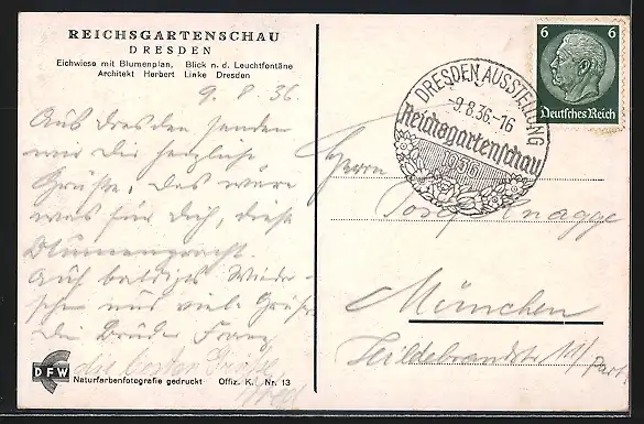 AK Dresden, Reichsgratenschau, Eichwiese mit Blumenplan