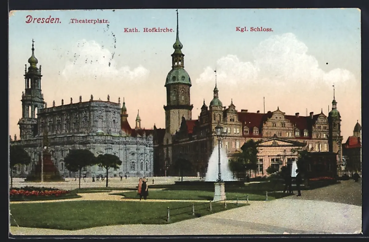 AK Dresden, Theaterplatz mit Katholischer Hofkirche und Königlichem Schloss