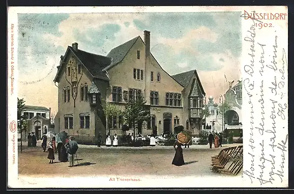 AK Düsseldorf, Ausstellung 1902, Alt-Triererhaus mit Besuchern