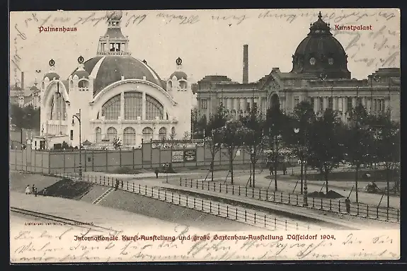 AK Düsseldorf, Internationale Kunst-Ausstellung und grosse Gartenbau-Ausstellung 1904, Palmenhaus und Kunspalast