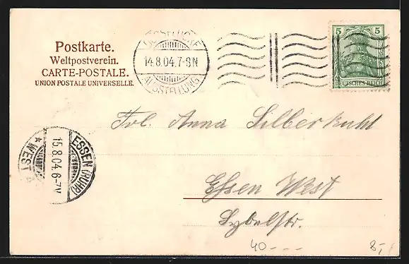 alte Ansichtskarte, gelaufen 1904, Stempelspur, guter Zustand