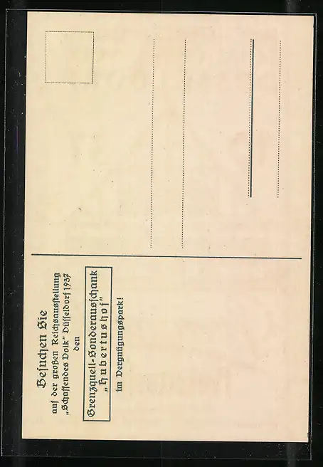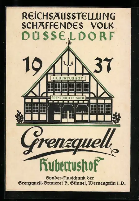 AK Düsseldorf, Reichsausstellung Schaffendes Volk 1937, Hubertushof, Grenzquell-Pilsner