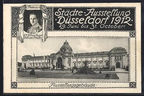 AK Düsseldorf, Städte-Ausstellung 29.06.-31.10.1912, Ausstellungsgebäude, S.K.H. Prinz August Wilh. von Preussen