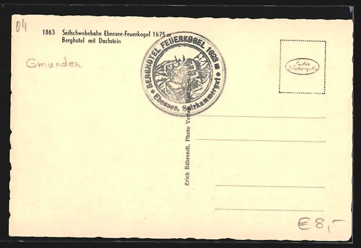 AK Ebensee-Feuerkogel, Berghotel Feuerkogel mit Dachstein
