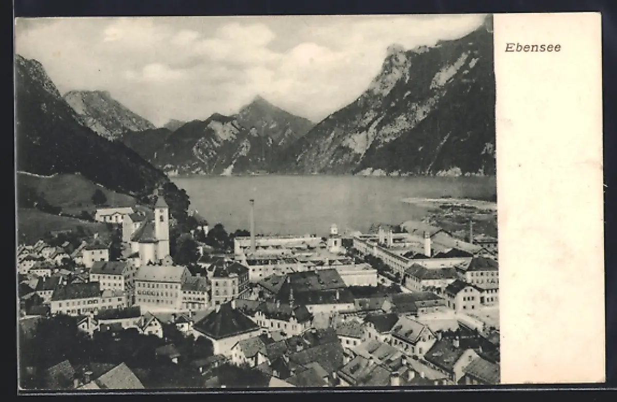 AK Ebensee, Teilansicht mit Bergen
