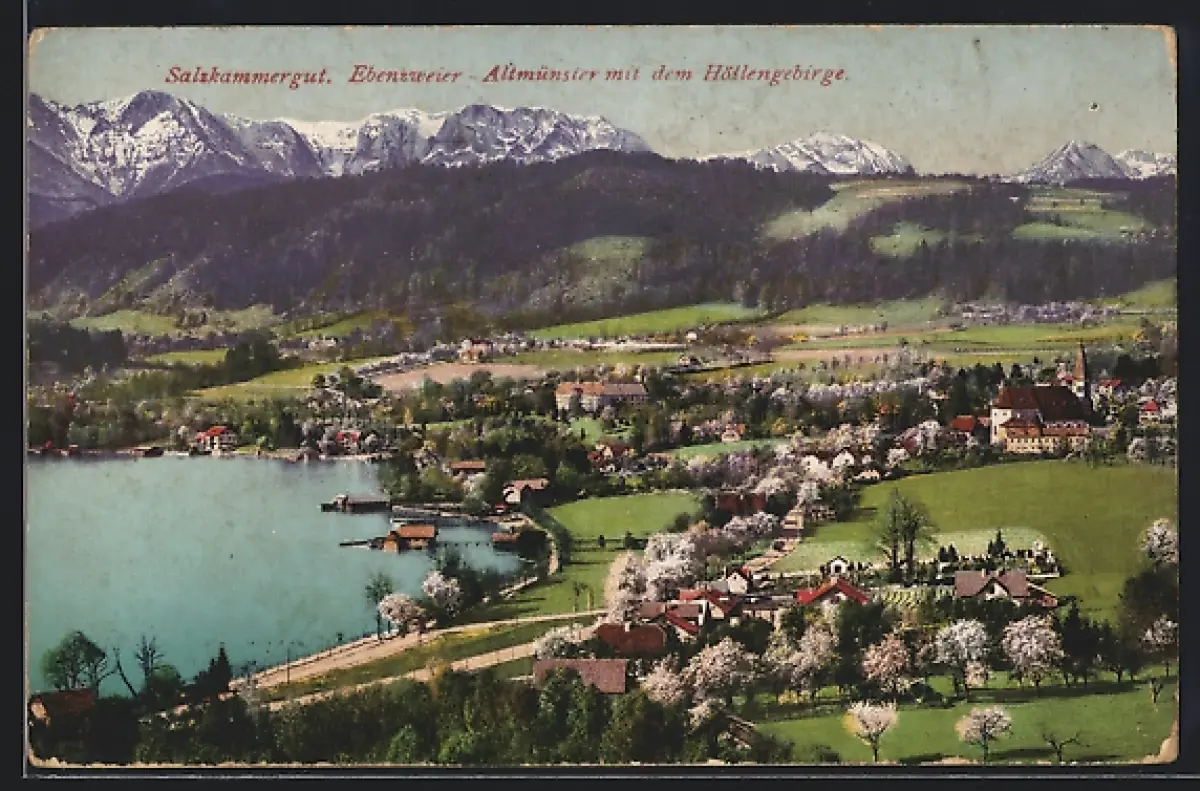 AK Ebenzweier-Altmünster, Totalansicht mit dem Höllengebirge