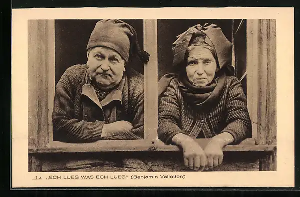 AK Ech Lüeg was ech Lüeg, zwei Elsässer in Trachten