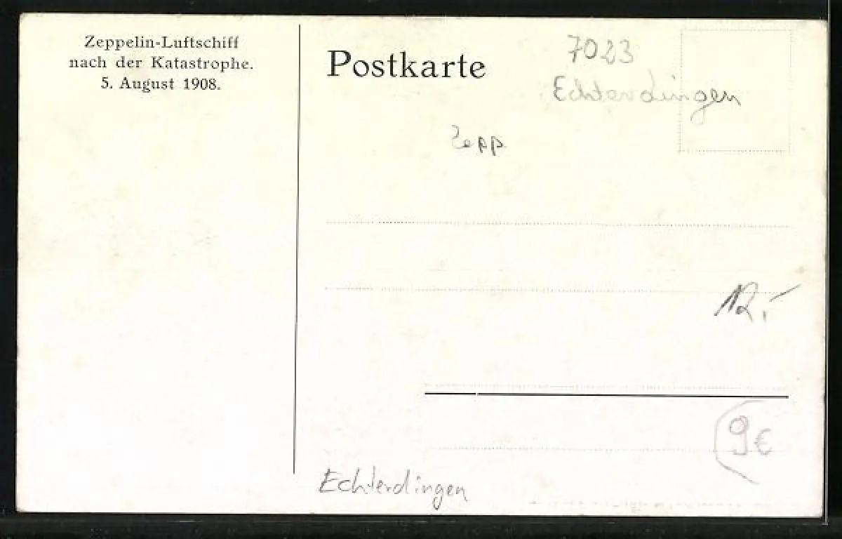 AK Echterdingen, Zeppelin-Luftschiff nach der Katastrophe 1908