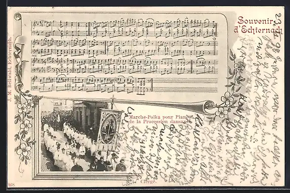 AK Echternach, Clergé, Marche-Polka pour Piano de la Procession dansant