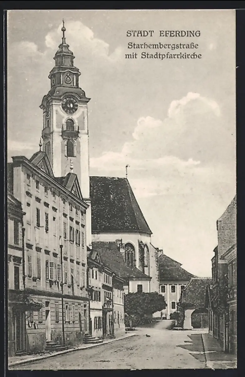 AK Eferding, Starhembergstrasse mit Stadtpfarrkirche