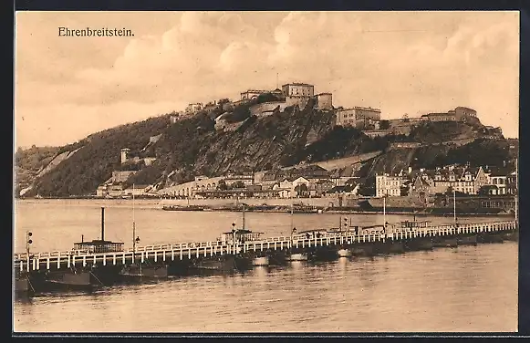 AK Ehrenbreitstein, Flusspartie mit Blick auf die Festung