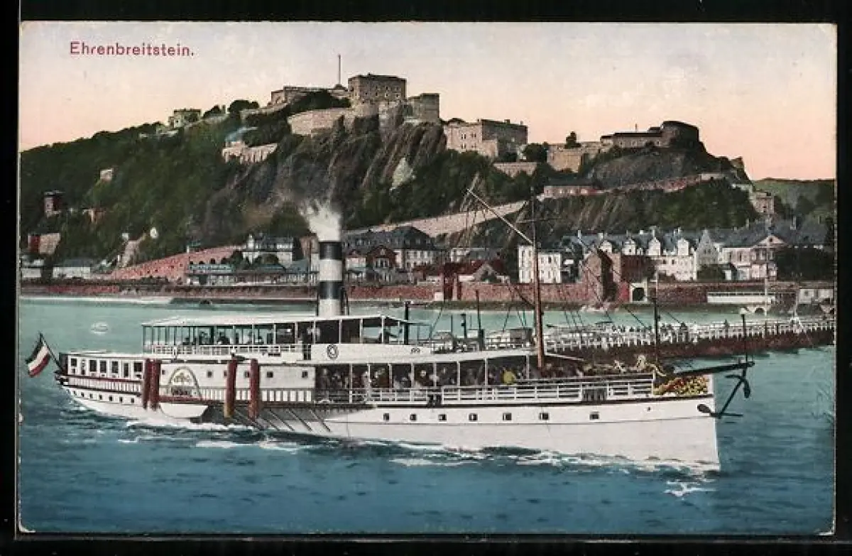 AK Ehrenbreitstein, Rheindampfer Undine passiert die Schiffsbrücke