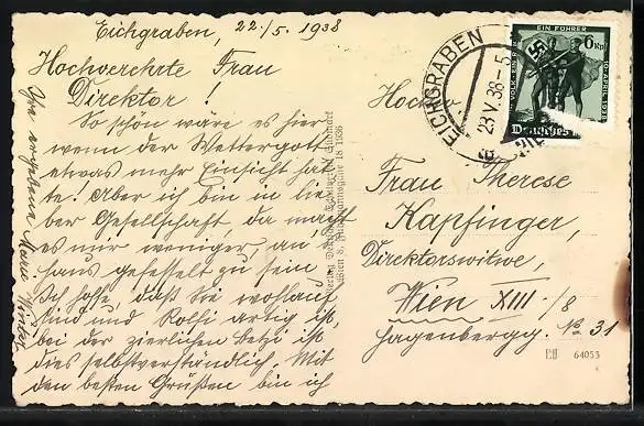 alte Ansichtskarte, gelaufen 1938, Briefmarke entfernt, guter Zustand