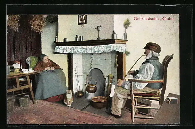 AK Ein altes Paar in einer Ostfriesischen Küche, Teekessel