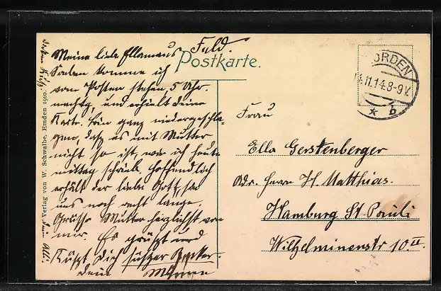 gelaufen 1914, Eckknick li. unten, guter Zustand