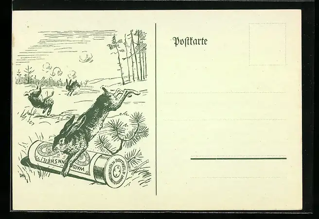 AK Einladung zur Jagd, Hase springt über eine Patrone